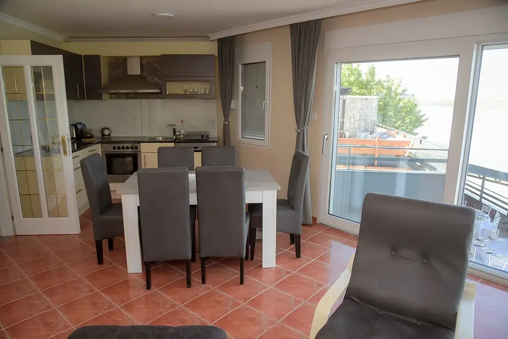 Prostrani apartman sa prelepim pogledom na reku, idealan za boravak do 6 osoba, pruža udoban i luksuzan prostor za opuštanje i uživanje. Savršen za veće porodice ili grupu prijatelja, ovaj apartman nudi sve potrebne sadržaje za savršen odmor.
